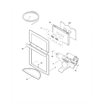 Connects dispenser controls and components in the refrigerator door. Replace if the wiring is damaged, frayed, or causing intermittent dispenser operation.