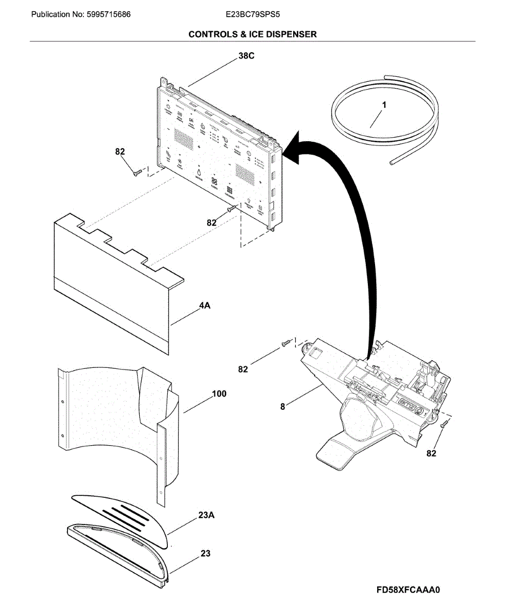 Parts for Electrolux E23BC79SPS5: Controls & Ice Dispenser Parts