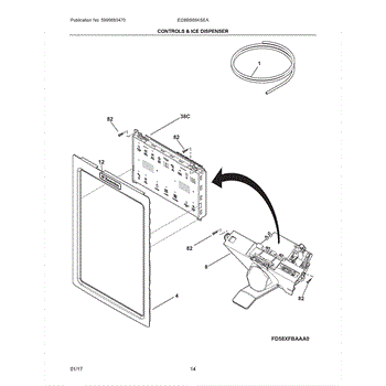 This dispenser wiring harness connects the dispenser controls and components in the refrigerator door, restoring electrical continuity for the dispenser functions and simplifying replacement of a damaged or faulty harness. What it does: