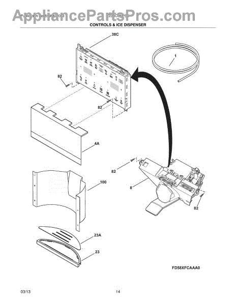 This dispenser module controls the refrigerator door water and ice dispenser pads and sends the control signals that operate the dispenser. Replacing a failed module restores normal button/pad response and dispenser operation. What it does: