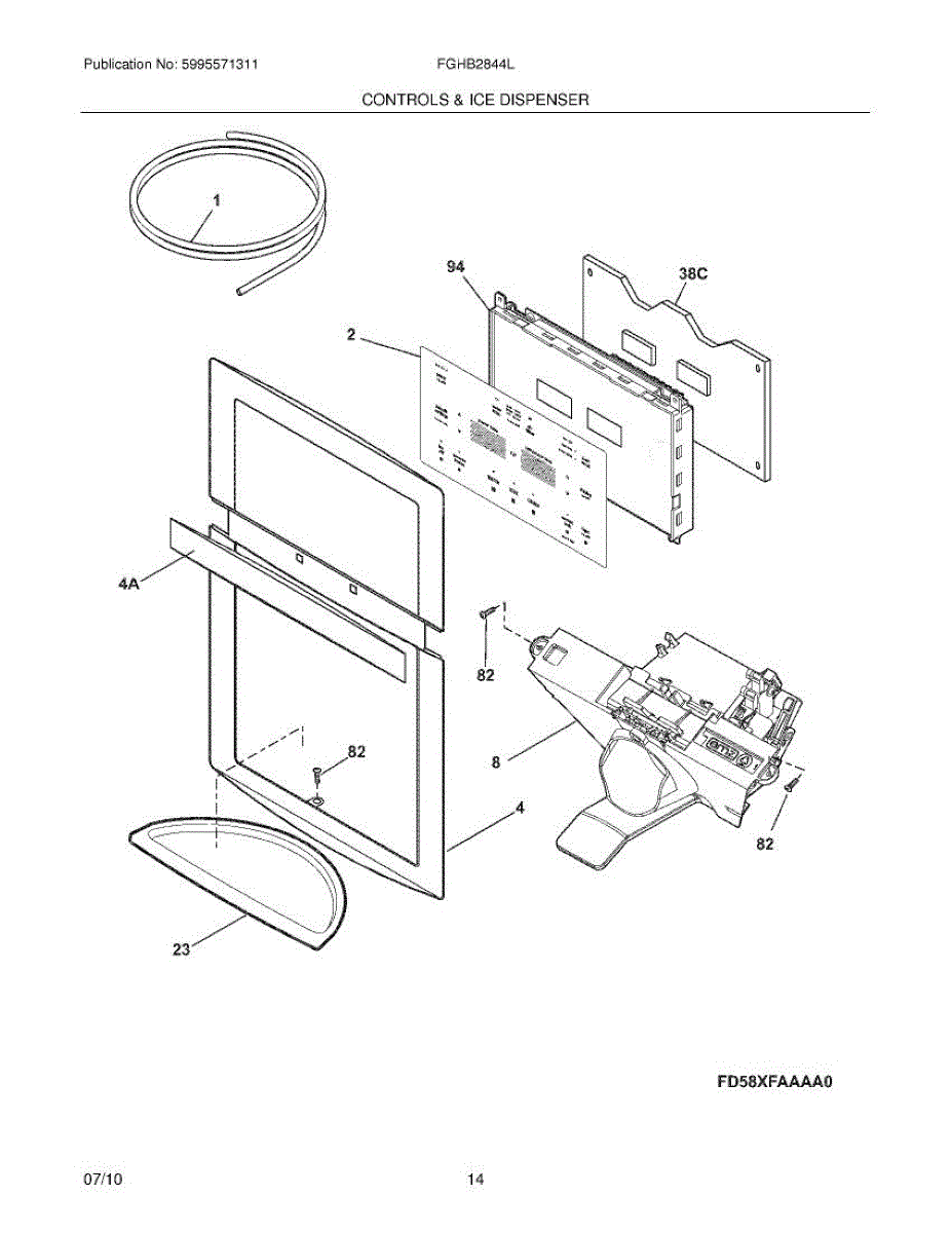 This dispenser module controls the refrigerator's ice and water dispensing functions and user interface. Replace a failed module to restore responsive dispensing, indicator lights, and consistent operation at the dispenser.