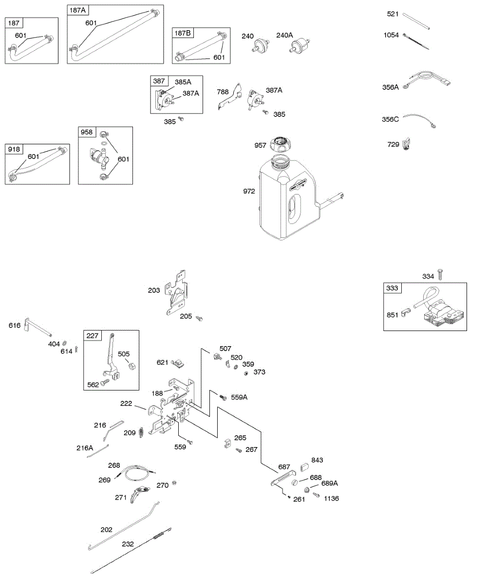 Control wire casing for lawn and garden engines. Protects and guides throttle or choke control cables. Replace if cracked, split, or missing.
