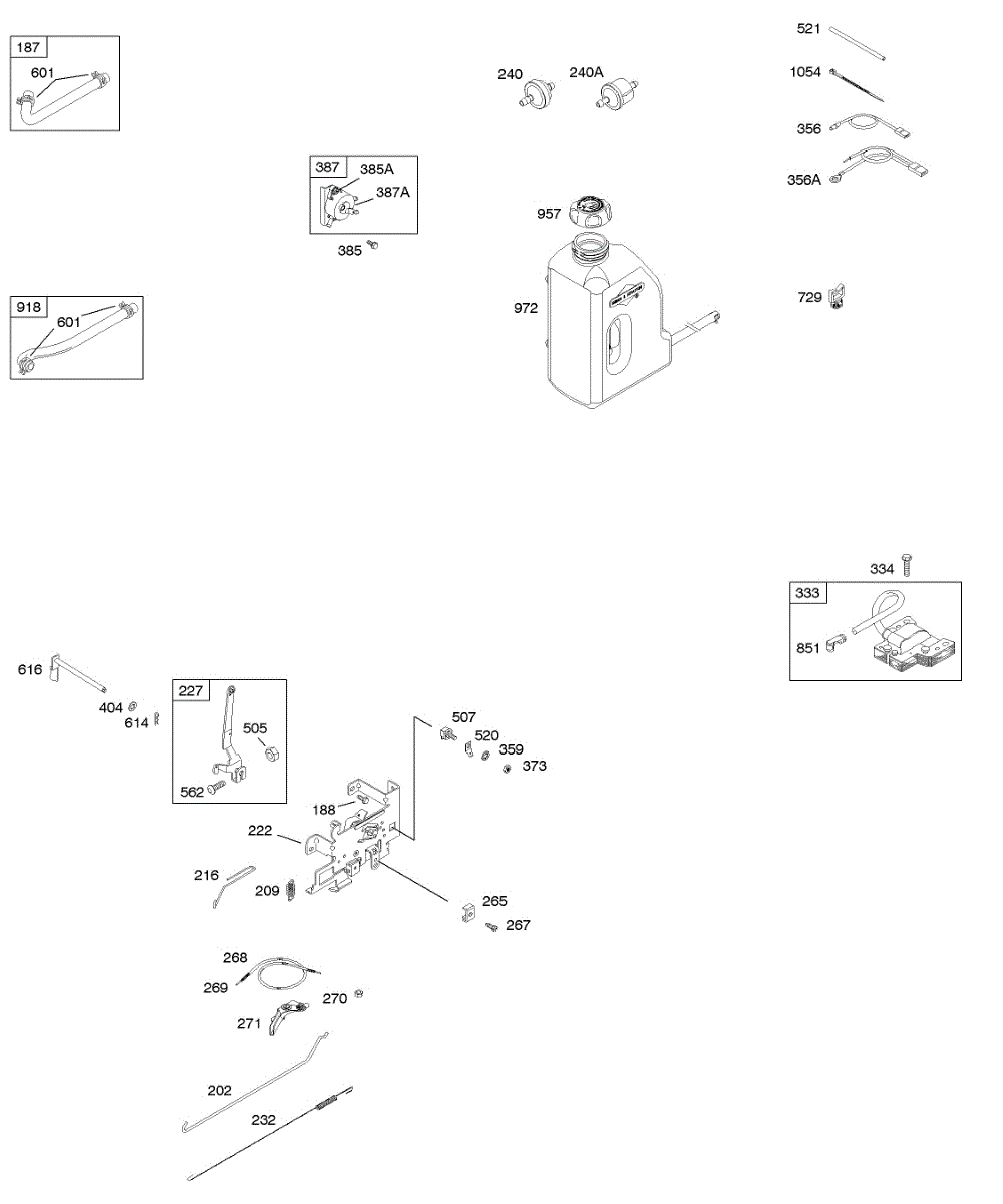 Control wire casing for lawn and garden engines. Protects and guides throttle or choke control cables. Replace if cracked, split, or missing.