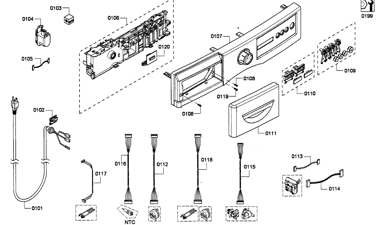 Fix washer electrical issues with this cable harness. Resolves no power, control failures, or intermittent operation. Moderate DIY repair.