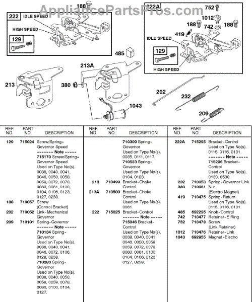 Parts for Briggs & Stratton 115432-0040-02: Controls Parts