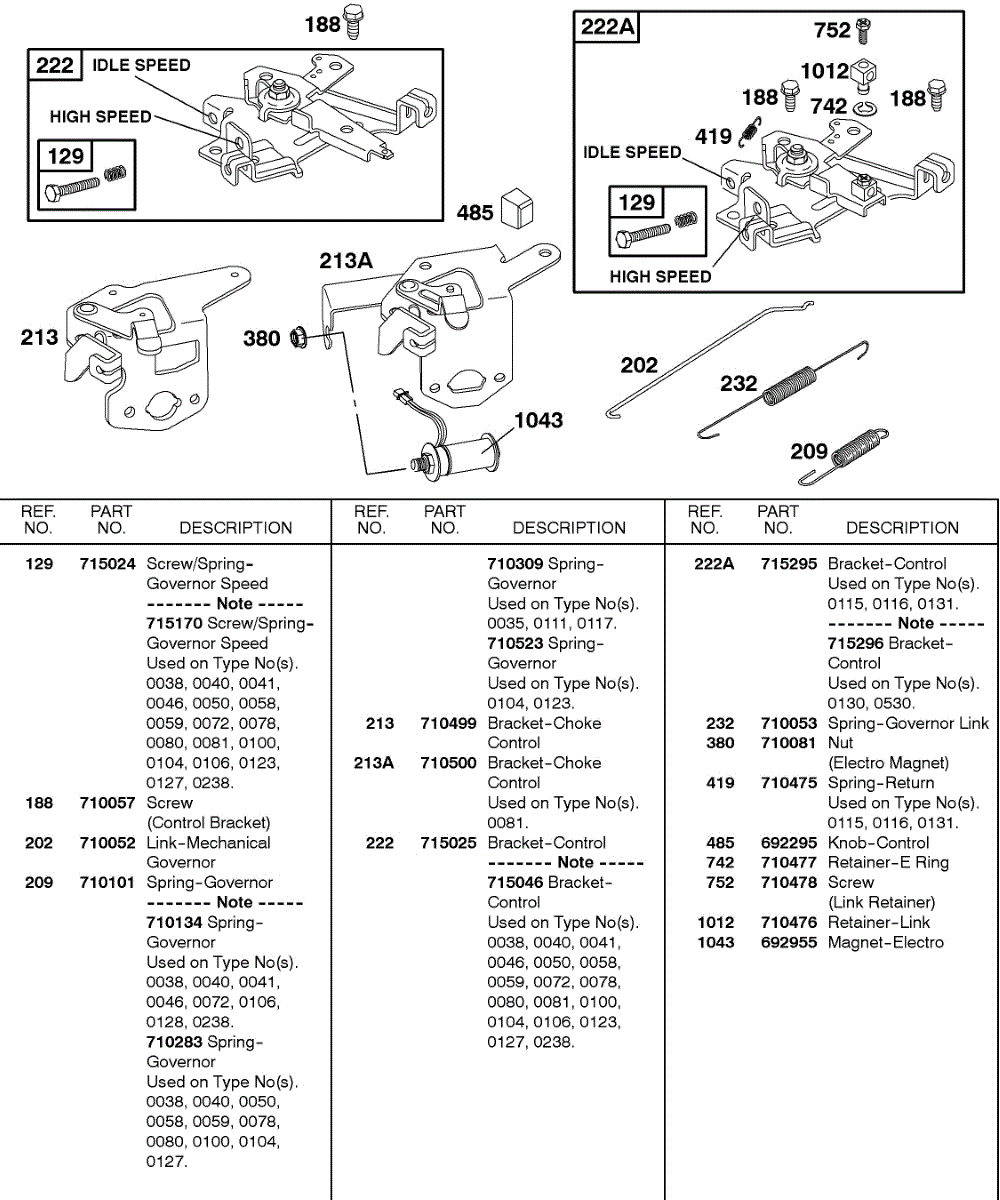Parts for Briggs & Stratton 115437-0054-01: Controls Parts