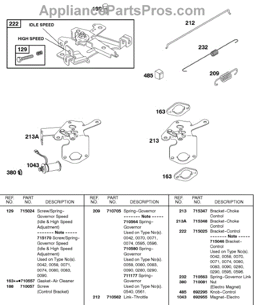 Parts for Briggs & Stratton 235437-0043-01: Controls Parts
