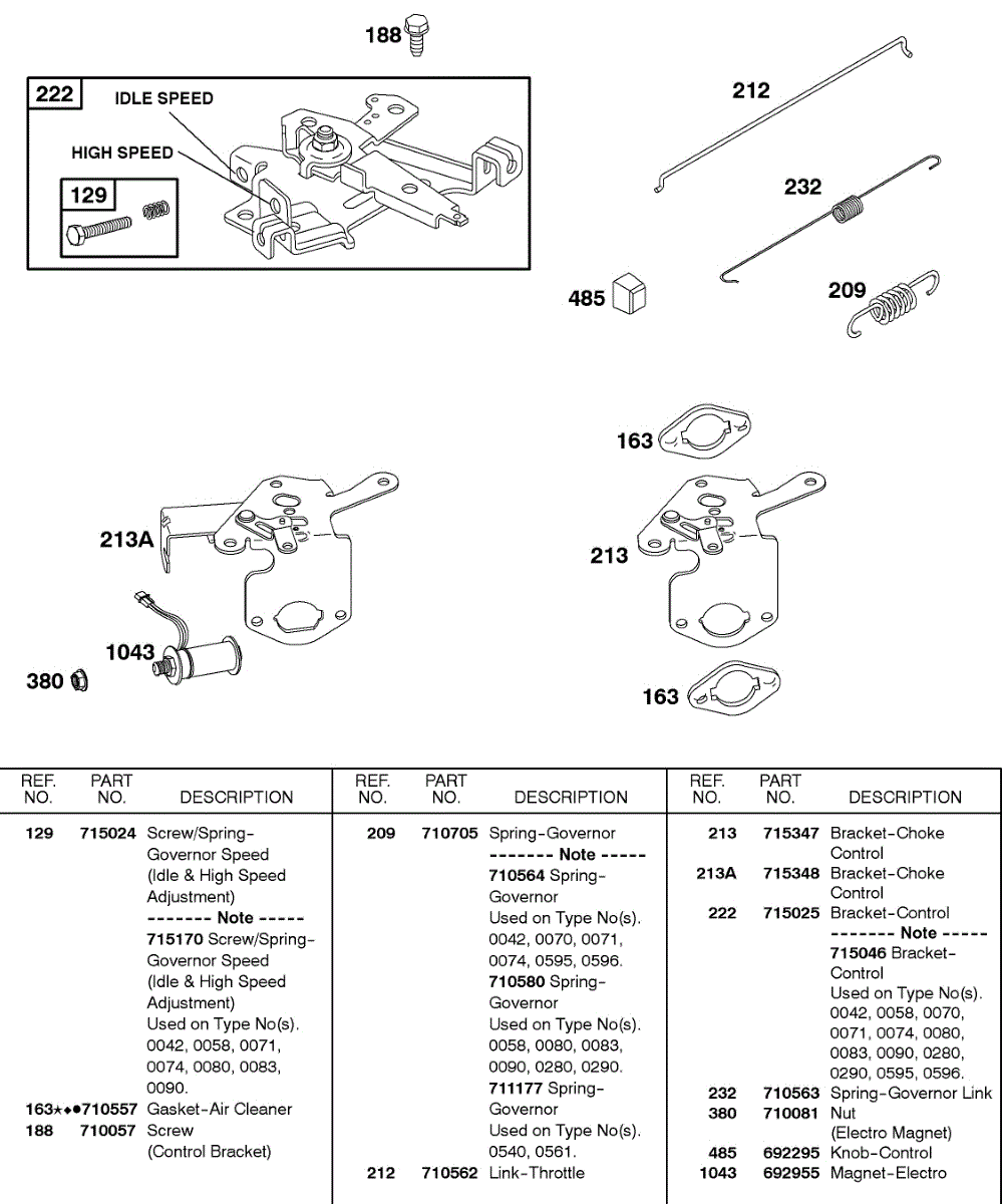 Parts for Briggs & Stratton 235437-0284-E1: Controls Parts