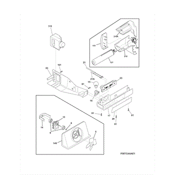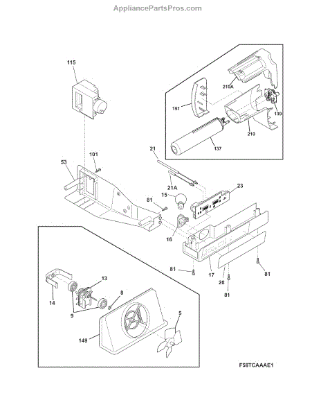 • Holds the evaporator fan motor firmly in the freezer fan assembly
