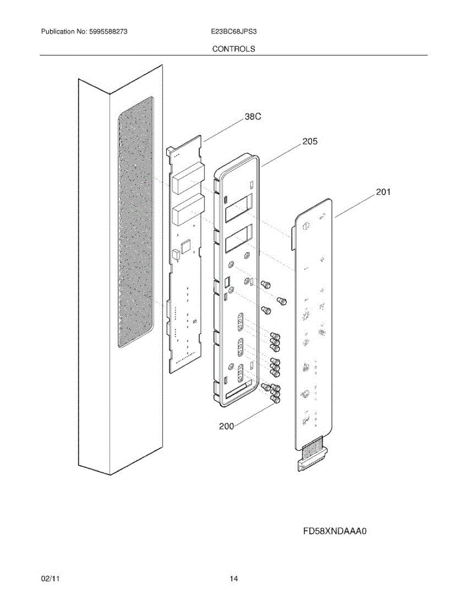 Control panel assembly for refrigerator user interface. Mounts on front exterior. Replace if cracked, buttons damaged, display faded, or panel missing.