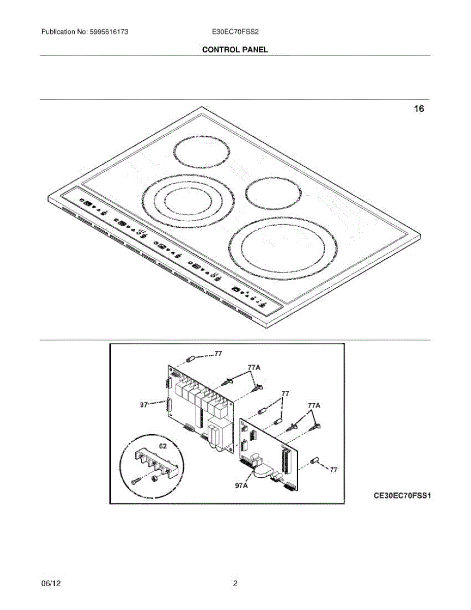 Power control circuit board for cooktop. Replaces damaged, malfunctioning, or burnt control board. Essential electronic component for burner operation.