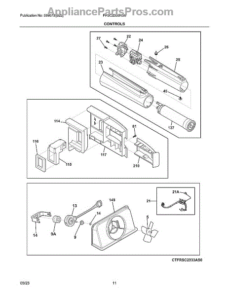 The Evaporator Fan Motor is an OEM part for Frigidaire refrigerators. It circulates air over the evaporator coils and throughout the refrigerator and freezer compartments, ensuring even cooling and maintaining the desired temperatures. Causes of a bad evaporator fan motor can include general wear and tear over time, electrical failures such as shorts or blown fuses, or physical damage from ice buildup or debris. Symptoms of a bad evaporator fan motor include: