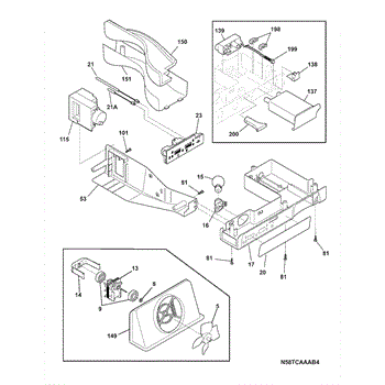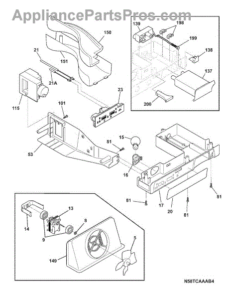 Shroud assembly that covers internal refrigerator components and helps direct airflow for consistent cooling. Replacing a cracked or damaged shroud restores proper airflow paths and can reduce fan vibration and contact-related noise. What it does: