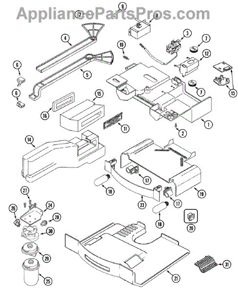 This factory screw secures appliance components to their mounting points. Replace missing, worn, or stripped hardware to restore a tight fit, proper alignment, and quieter operation across the affected assembly.