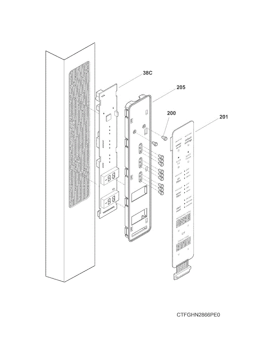 Flexible button panel for refrigerator control consoles. Restores responsive touch input and clear labels. Replace when cracked, worn, or unresponsive.
