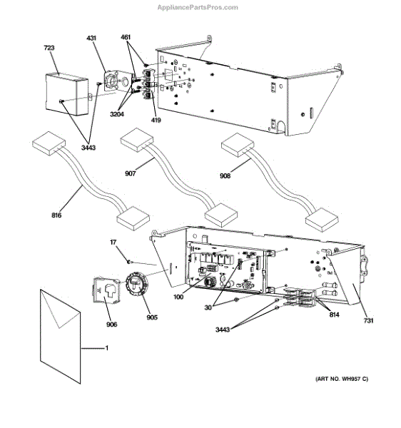 Wire harness extension assembly for laundry centers. Replaces damaged, frayed, or broken wiring harness extensions. Essential for safe electrical connections.