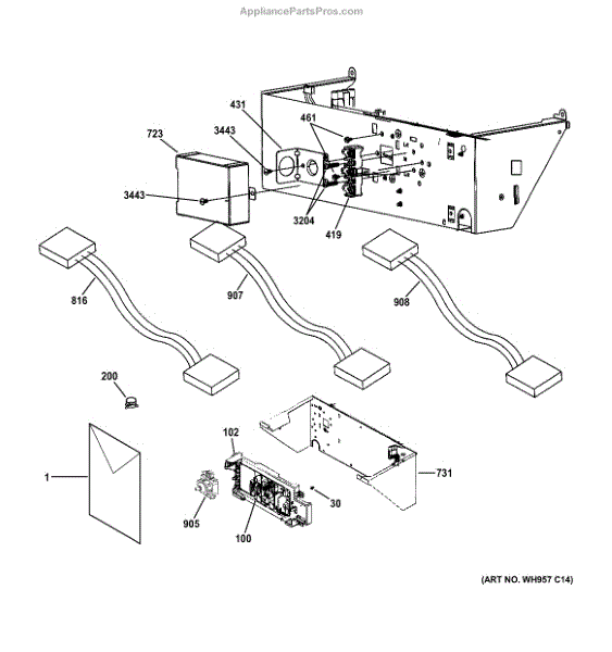 Wire harness extension assembly for laundry centers. Replaces damaged, frayed, or broken wiring harness extensions. Essential for safe electrical connections.