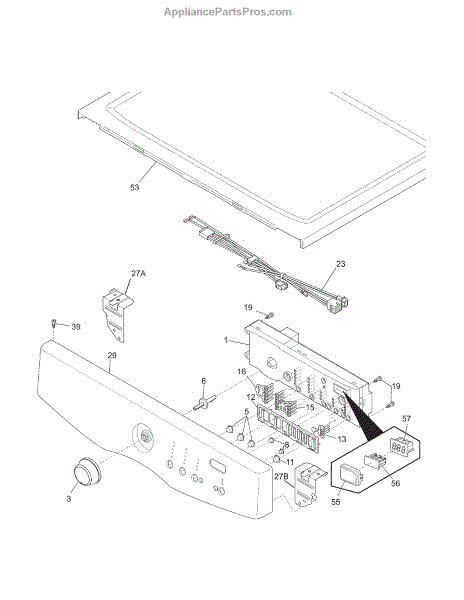 Complete control console assembly for your dryer. Replaces cracked, broken, or worn console housing. Includes mounting points for control panel installation.