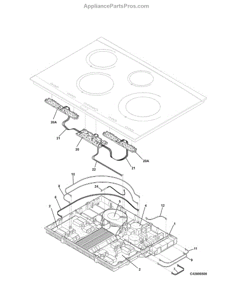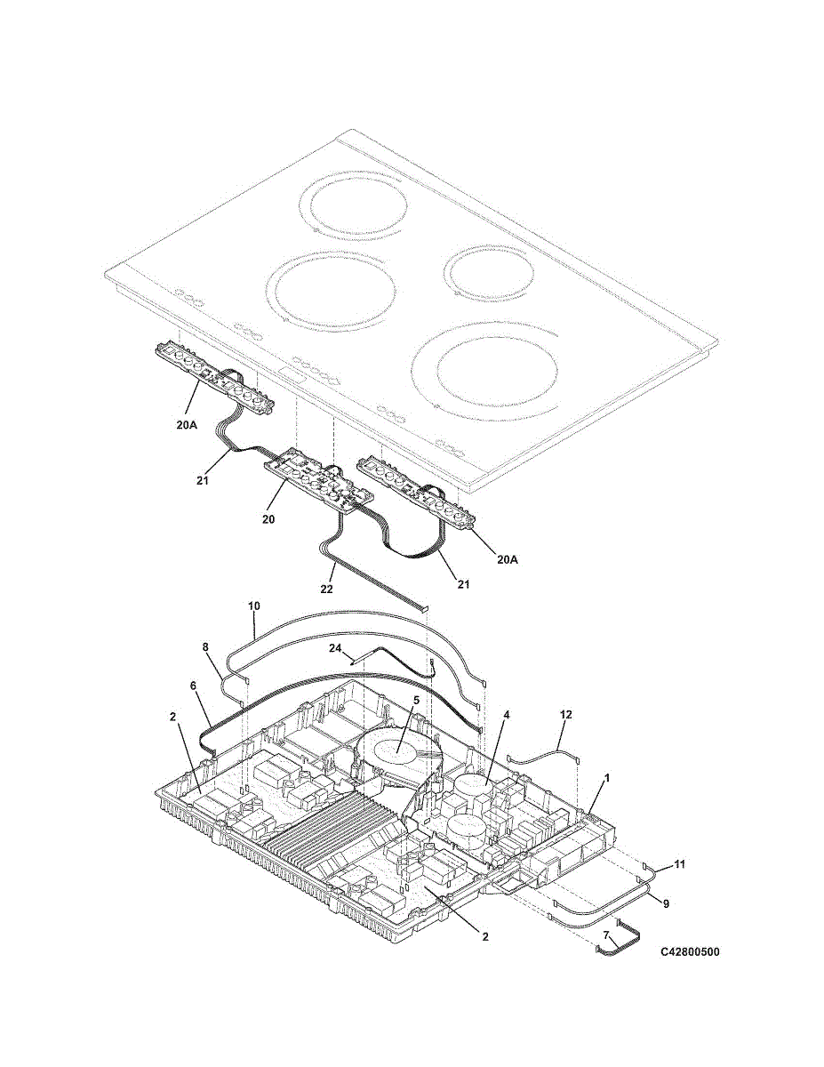 Technical service data sheet for cooktop model reference and repair documentation. Provides wiring diagrams, specifications, and troubleshooting guide.