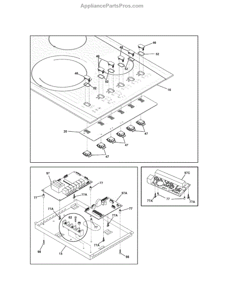 Control board for cooktops not heating or responding to controls. Regulates burner operation and interface functions. Moderate DIY repair restores reliability.