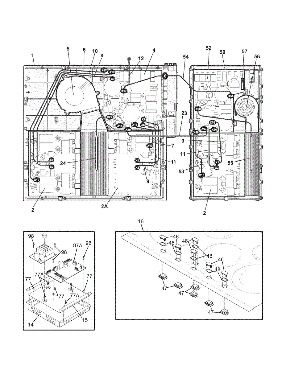 Housing assembly for cooktop induction control board. Protects internal electronics and wiring. Replace if cracked, damaged, or missing components.