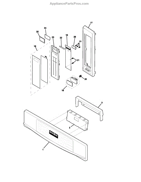 Touch pad control panel overlay for wall ovens. Replaces worn, cracked, or unresponsive control panel surfaces. Restores clear button labels and functions.
