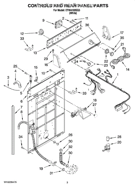 This rear panel support is the structural bracket that secures the appliance's rear cover/backguard in place. Replacing a worn or broken support restores proper alignment, helps protect internal components, and reduces vibration noise.
