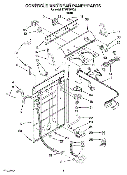 This rear panel support is the structural bracket that secures the appliance's rear cover/backguard in place. Replacing a worn or broken support restores proper alignment, helps protect internal components, and reduces vibration noise.