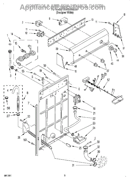 This rear panel support is the structural bracket that secures the appliance's rear cover/backguard in place. Replacing a worn or broken support restores proper alignment, helps protect internal components, and reduces vibration noise.