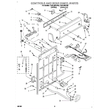 This rear panel support is the structural bracket that secures the appliance's rear cover/backguard in place. Replacing a worn or broken support restores proper alignment, helps protect internal components, and reduces vibration noise.