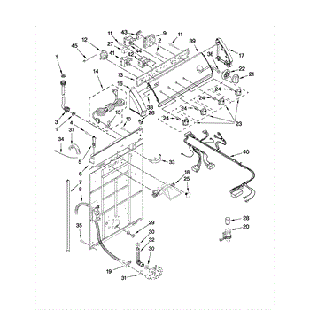 This rear panel support is the structural bracket that secures the appliance's rear cover/backguard in place. Replacing a worn or broken support restores proper alignment, helps protect internal components, and reduces vibration noise.