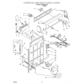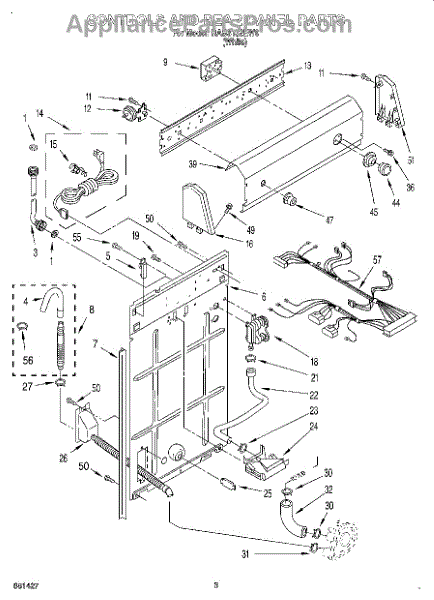 This rear panel support is the structural bracket that secures the appliance's rear cover/backguard in place. Replacing a worn or broken support restores proper alignment, helps protect internal components, and reduces vibration noise.