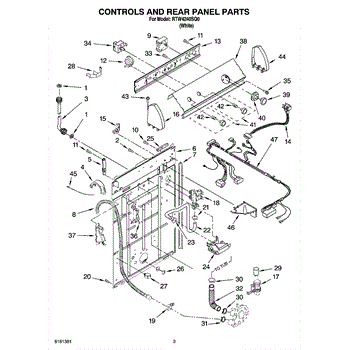 The Drain Hose is an OEM part for Whirlpool washing machines. It is responsible for directing and carrying away water that is pumped out of the washer tub during drain cycles. The drain hose connects from the bottom of the washtub to the household plumbing or out the back of the machine. This washer drain hose includes the retaining clips to hold in place. Causes of a bad drain hose can include mineral deposits from hard water building up inside the hose, cracking from flexing during use, rodent damage, or general degradation from years of service. Symptoms of a faulty drain hose include: