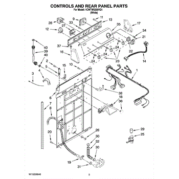 Water inlet valve assembly includes: Hot and cold inlet valves, thermistor, vacuum break and wiring harness.