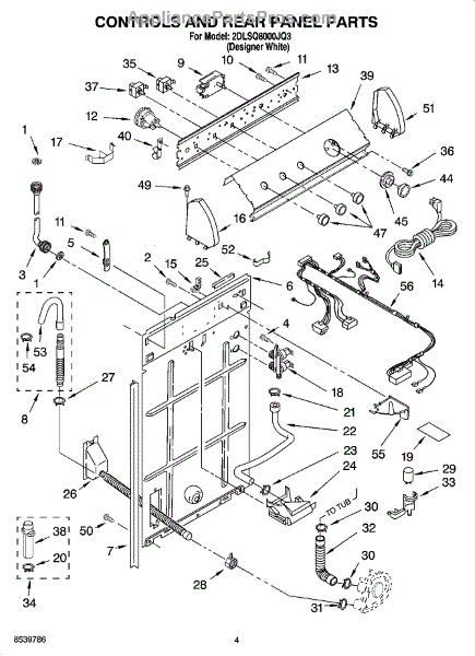 This anchored hose assembly routes water safely inside the appliance and secures in place to prevent movement and kinking for reliable flow. Use it when a worn or damaged hose causes leaks, poor draining, or noise. What it does