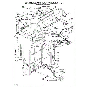 This anchored hose assembly routes water safely inside the appliance and secures in place to prevent movement and kinking for reliable flow. Use it when a worn or damaged hose causes leaks, poor draining, or noise. What it does