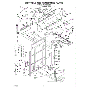 This rear panel support is the structural bracket that secures the appliance's rear cover/backguard in place. Replacing a worn or broken support restores proper alignment, helps protect internal components, and reduces vibration noise.