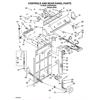 This anchored hose assembly routes water safely inside the appliance and secures in place to prevent movement and kinking for reliable flow. Use it when a worn or damaged hose causes leaks, poor draining, or noise. What it does
