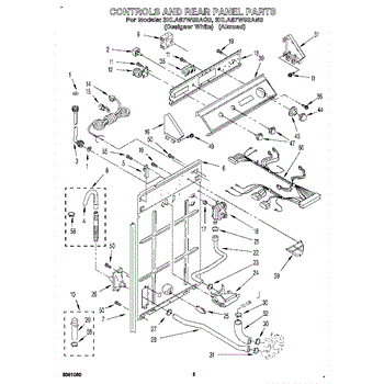 This rear panel support is the structural bracket that secures the appliance's rear cover/backguard in place. Replacing a worn or broken support restores proper alignment, helps protect internal components, and reduces vibration noise.