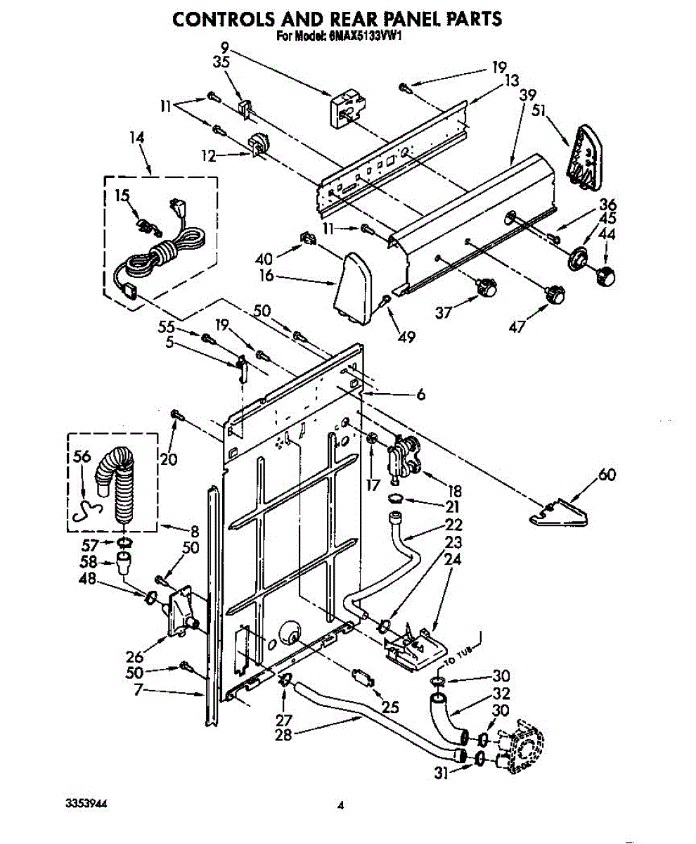Internal drain hose assembly routes water from washer tub to drain pump. Replace if cracked, split, leaking, or connector is broken or damaged.