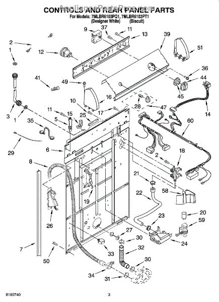 Parts for Whirlpool 7MLBR6103PQ1: 02 - Controls And Rear Panel Parts