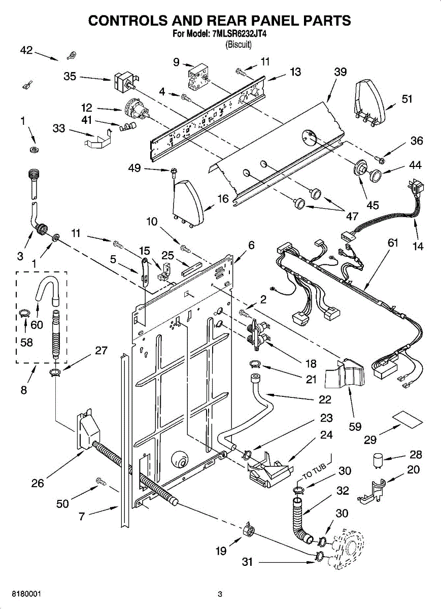 Parts for Whirlpool 7MLSR6232JQ4: 02 - Controls And Rear Panel Parts