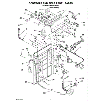 The Drain Hose is an OEM part for Whirlpool washing machines. It is responsible for directing and carrying away water that is pumped out of the washer tub during drain cycles. The drain hose connects from the bottom of the washtub to the household plumbing or out the back of the machine. This washer drain hose includes the retaining clips to hold in place. Causes of a bad drain hose can include mineral deposits from hard water building up inside the hose, cracking from flexing during use, rodent damage, or general degradation from years of service. Symptoms of a faulty drain hose include: