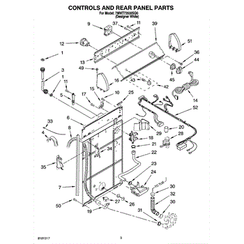 This rear panel support is the structural bracket that secures the appliance's rear cover/backguard in place. Replacing a worn or broken support restores proper alignment, helps protect internal components, and reduces vibration noise.