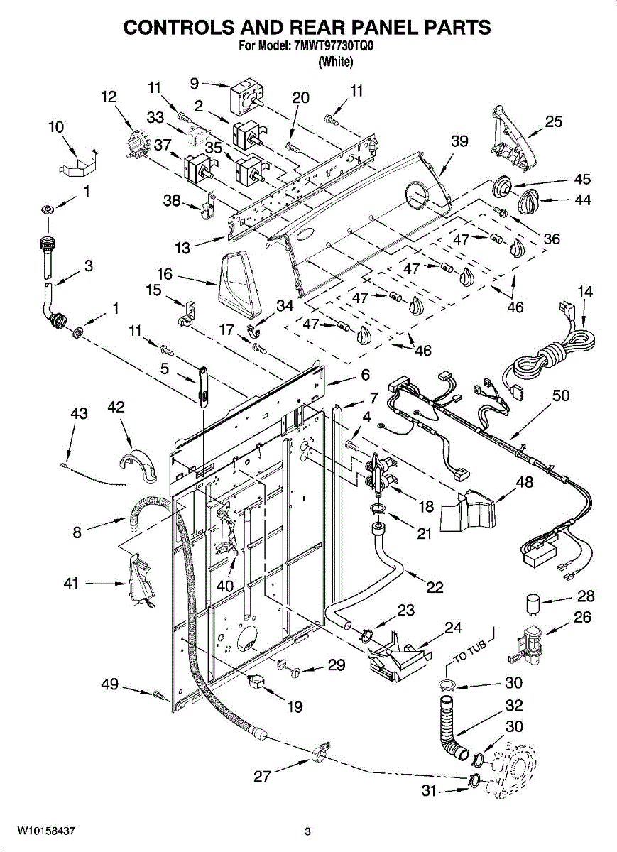 Replaces the vacuum break inlet hose connecting the water inlet to your washer tub. Needed when original hose is cracked, burst, leaking, or damaged.