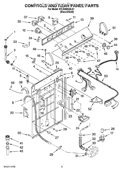 This rear panel support is the structural bracket that secures the appliance's rear cover/backguard in place. Replacing a worn or broken support restores proper alignment, helps protect internal components, and reduces vibration noise.