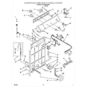 This rear panel support is the structural bracket that secures the appliance's rear cover/backguard in place. Replacing a worn or broken support restores proper alignment, helps protect internal components, and reduces vibration noise.