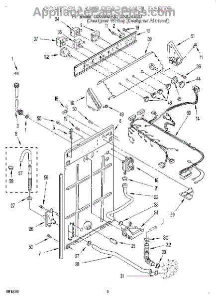 This rear panel support is the structural bracket that secures the appliance's rear cover/backguard in place. Replacing a worn or broken support restores proper alignment, helps protect internal components, and reduces vibration noise.