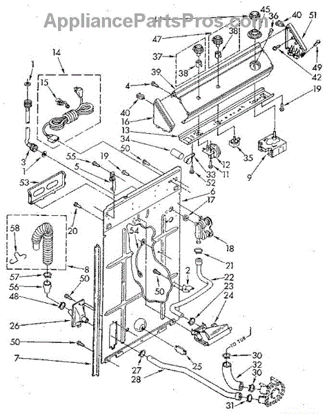 Replaces the vacuum break inlet hose connecting the water inlet to your washer tub. Needed when original hose is cracked, burst, leaking, or damaged.