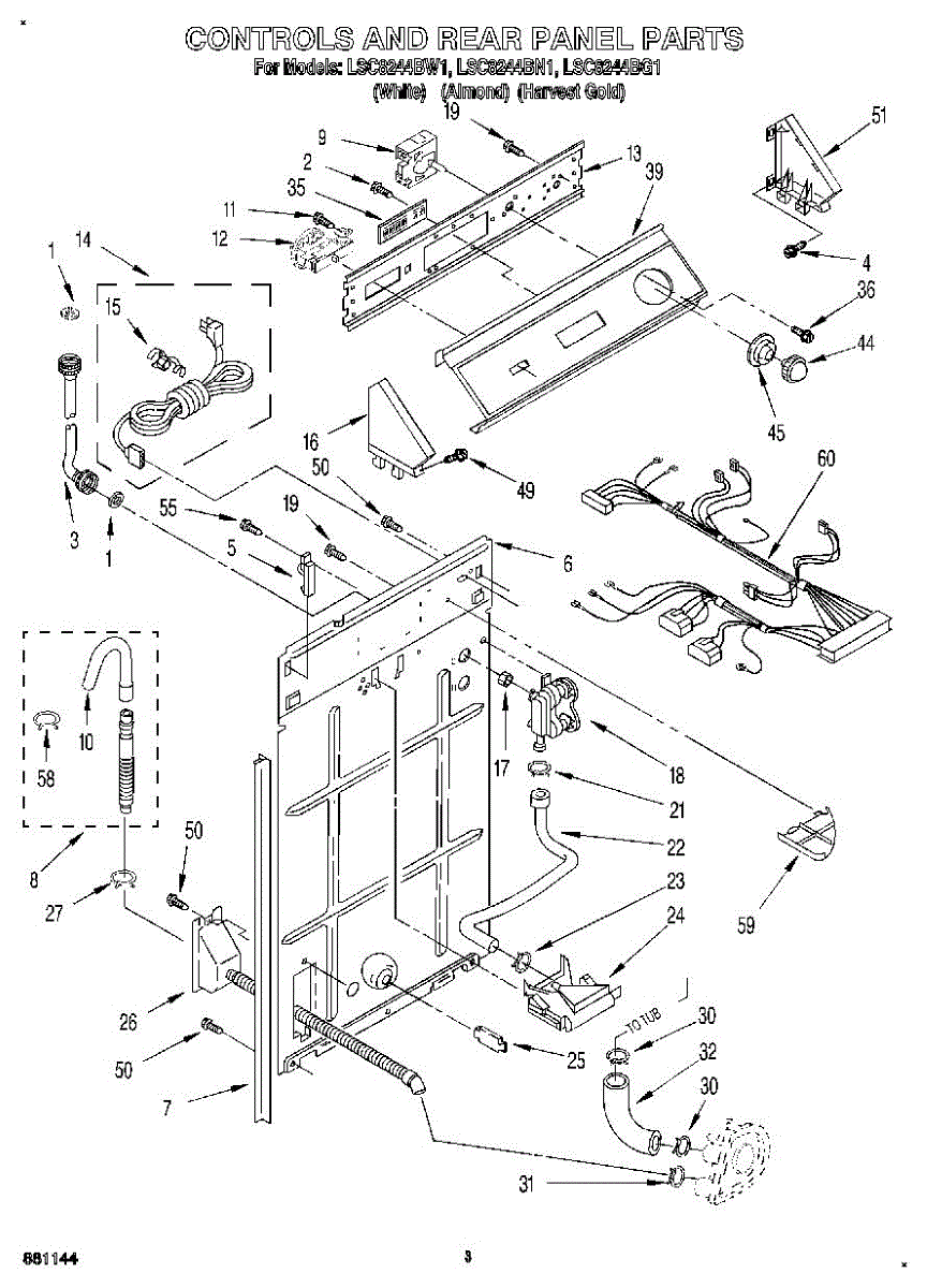 Parts for Whirlpool LSC8244BW1: 02 - Controls And Rear Panel Parts